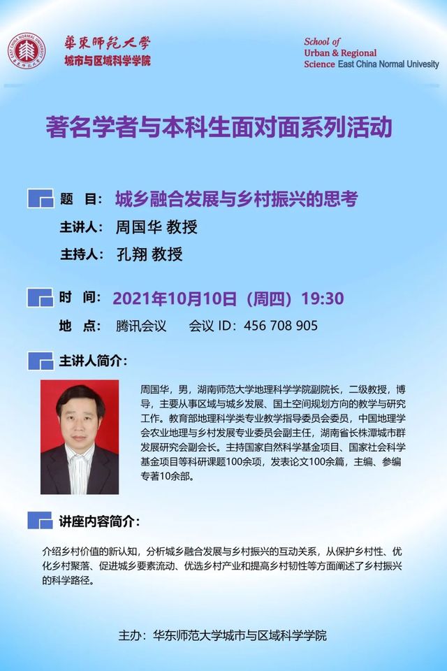 讲座信息 | 湖南师大周国华教授将分享城乡融合发展与乡村振兴的思考