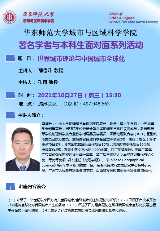 讲座信息|中大薛德升教授分享世界城市理论与中国城市全球化