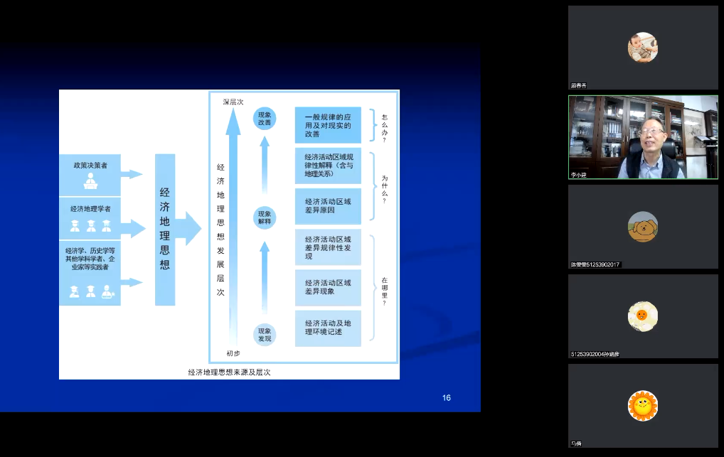 至此,本次分享活动圆满结束。通过“著名学者与本科生面对面系列讲座”让同学们更加直接的了解学科前沿的学术思想和最新的研究方向,激发同学们的学术热情,更好地调动同学们对于探寻地理知识的兴趣和积极性。