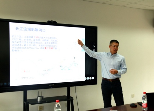 蒋雪中副教授以“长江河口近期变化与河口形势”为主题,通过详实的数据展现了长江口承受的流域及河口本地自然、人类活动的多重压力,刻画了长江河口入海泥沙量、径流洪枯、河口发育的方面的变化;应用RS&GIS等先进技术,进行了高浊度河口悬浮泥沙的遥感反演研究,发现了长江河口最大浊度带的新近变化;论证了长江流域减沙对河口泥沙向浙闽沿岸输运的影响;揭示了咸淡水混合区的温度场变化;辨析了长江口低滩区水沙变化机理及横沙东滩的成陆机制;讨论了近海海洋开发、深水港建设方略与关键技术等现实问题,并结合长江河口趋势性变化展望了河口生态协调发展的途径等。