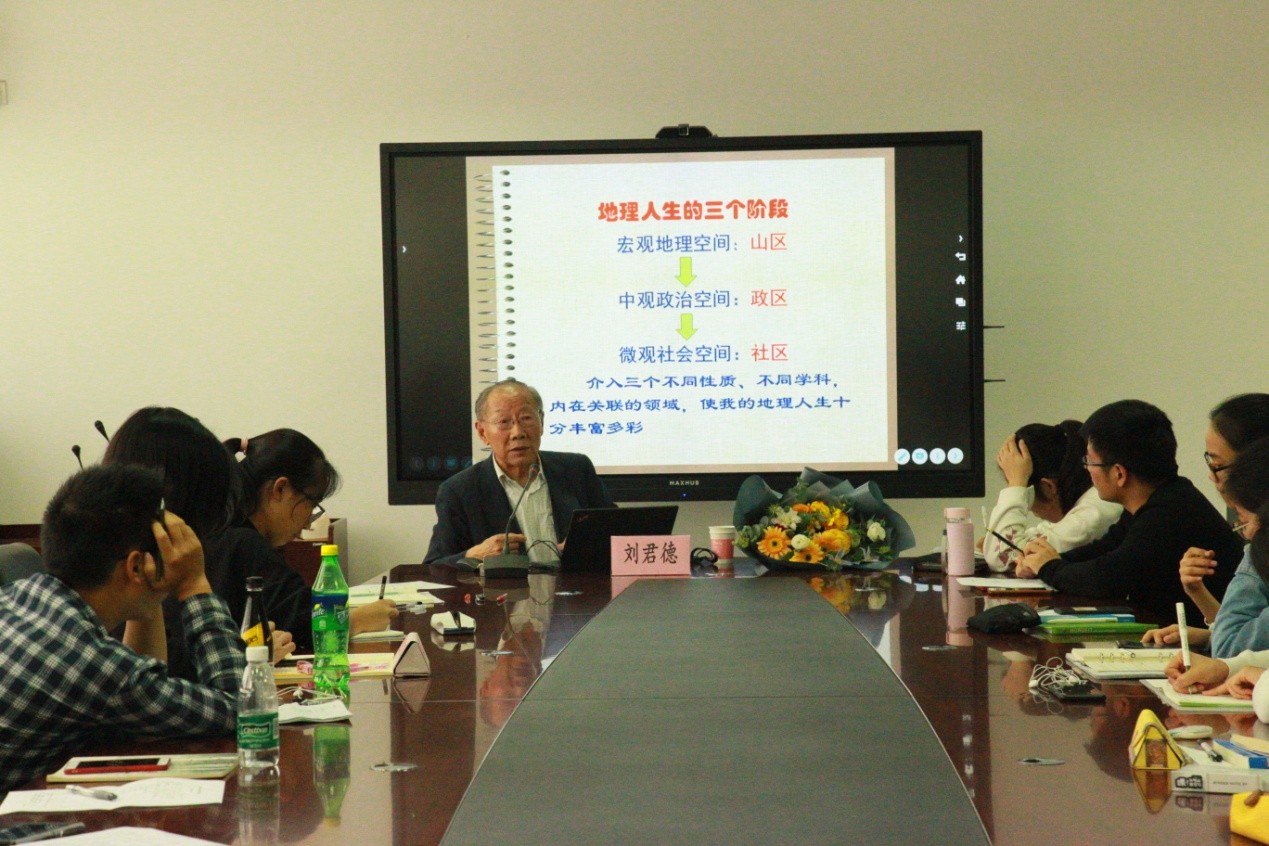 城区学院特邀刘君德教授于2018年10月24日下午1点在资环楼539会议室为学院师生做专题学术报告:“我的地理人生感悟——兼谈新时代人文地理学发展问题“。本场报告由城区公司党委副书记徐蓓丽主持,学院教师、博士、硕士、本科40余人参加了本次专题讲座。