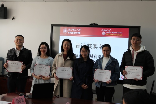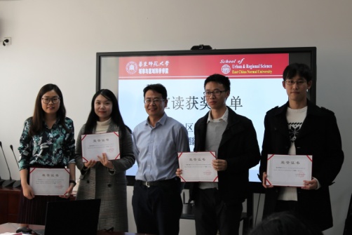 城市与区域科学学院学术委员会委员、副经理滕堂伟副教授宣读获奖名单,此次评奖共产生十四名获奖者,其中一等奖7名,分别是李琬、宓泽锋、尹春、桂钦昌、覃雄合、颜子明与张翼鸥;二等奖7名,分别是杨文龙、张婷麟、康江江、侯纯光、朱婉莹、杨沁杰与方怡青。