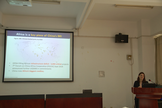 Penny Bamber研究员接着从全球价值链视角分析了“一带一路”背景下的中非经贸关系。她首先根据中非双方进出口数据分析得出“中国是撒哈拉以南非洲重要的贸易伙伴,但撒哈拉以南非洲不是中国重要的贸易伙伴”的观点。接着,她以中国机械设备制造业为例,从上游(upstream)、中游(midstream)、下游(downstream)环节分析了非洲在中国全球价值链中可能发挥的潜在作用。最后,她从经济升级、社会升级、环境升级三个角度分析了中国投资对非洲国家发展的特殊贡献。