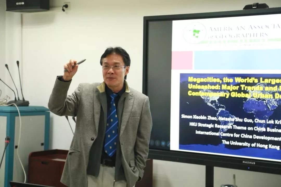 本次讲座分为两场。东亚比较城市化研究领军人之一、地理学顶级期刊审稿人、英国利兹大学Paul Waley教授主讲“Traditional Retail Markets: The New Gentrification Frontier”;金融地理全球网络创建者和核心成员 Simon Zhao 教授主讲“Megacities ,the World’s Largest Cities Unleashed: Major Trends and Dynamics in Contemporary Global Urban Development”,城市与区域科学学院紫江青年学者姜炎鹏博士担任主持人,304am永利集团终身教授宁越敏教授、城市与区域科学学院副经理刘承良教授担任点评人,公司殷为华副教授、王列辉副教授、叶超教授、张凡博士后,江南大学包卿研究员、广东财经大学陈德宁副教授、宁波大学马仁锋副教授,以及公司相关院系的研究生和本科生参加了本次讲座。