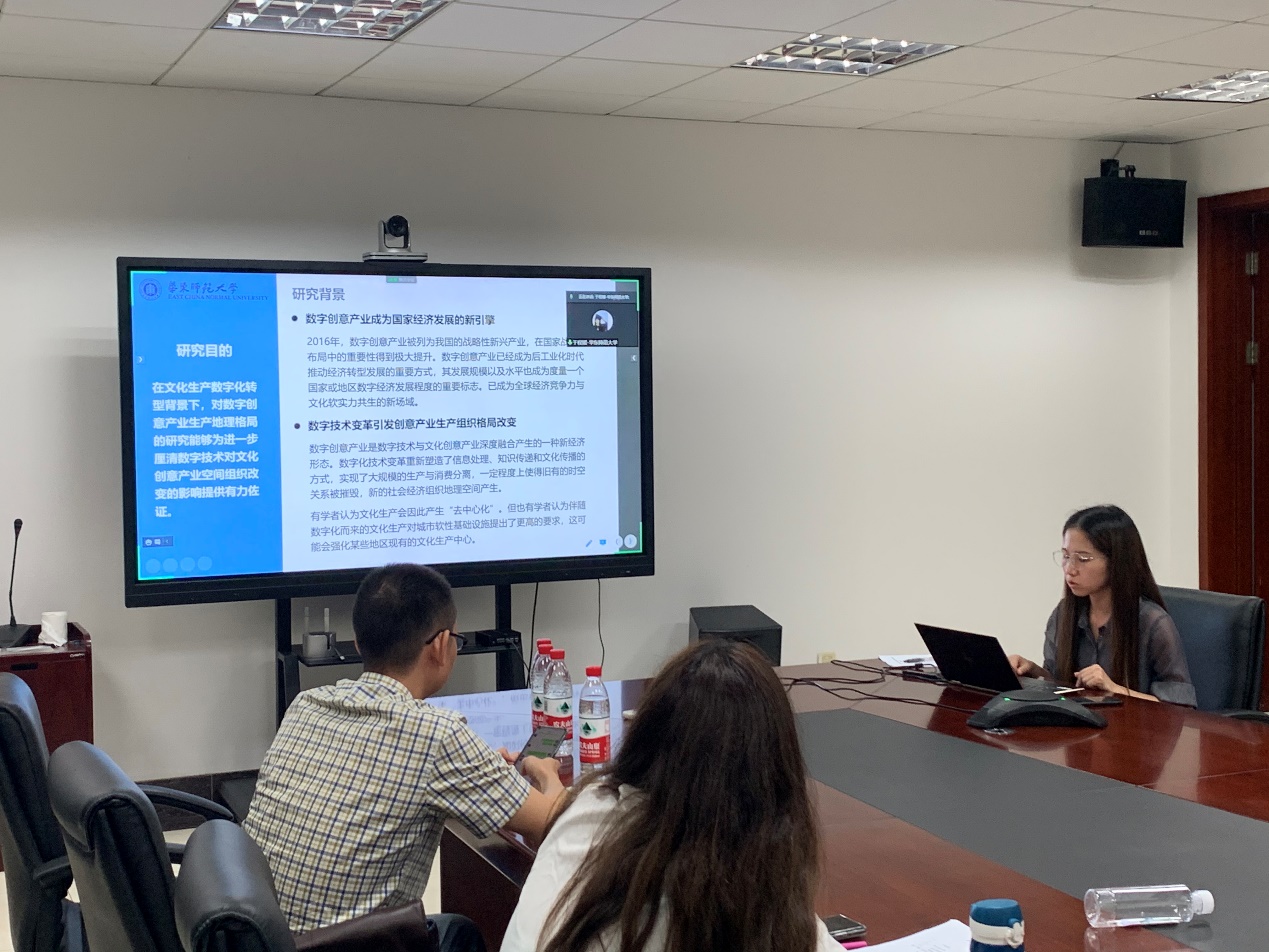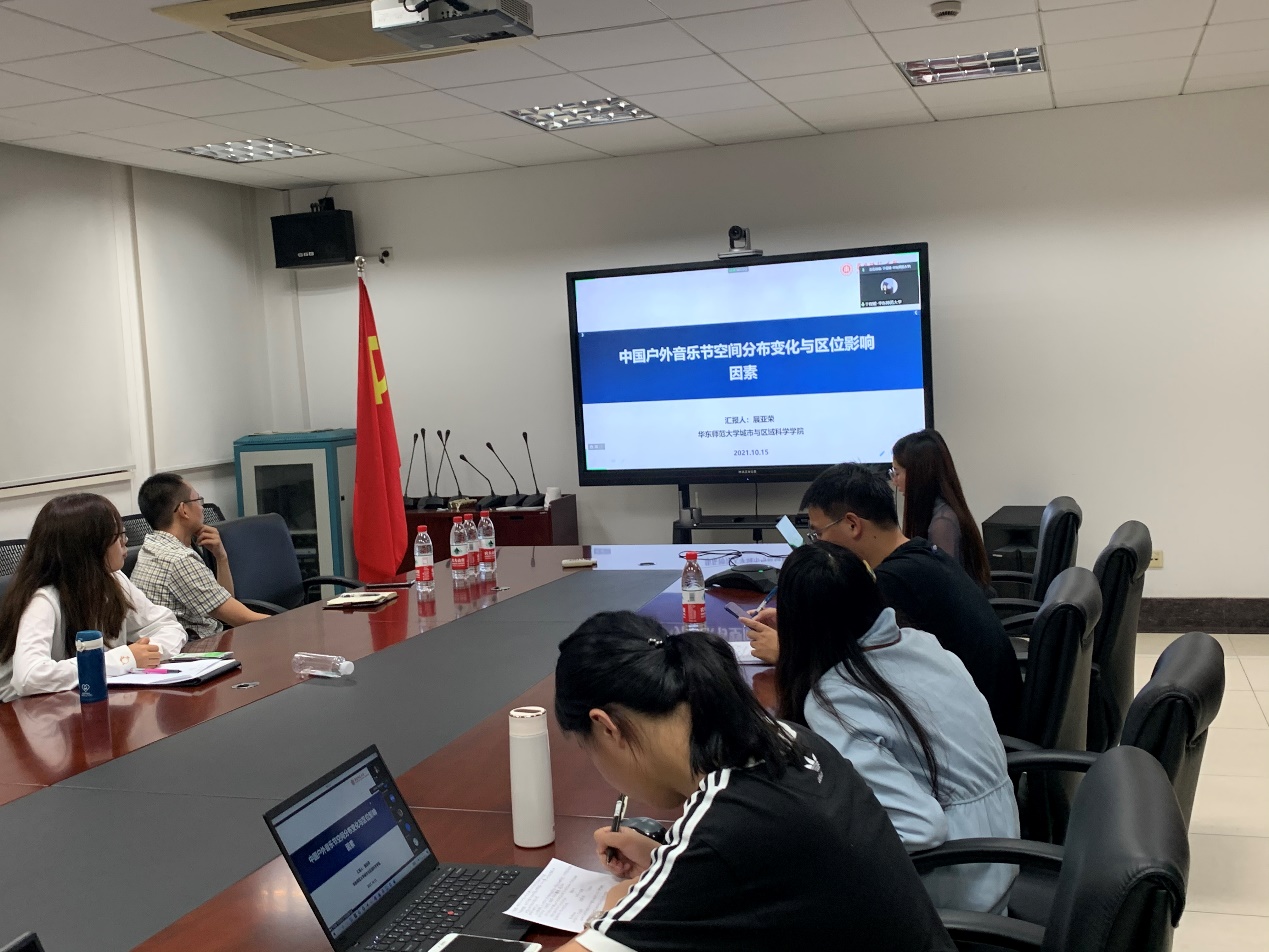 2021年10月15日晚上18:00,在城市与区域科学学院539会议室举办研究生“学术面对面”活动,在历时两个多小时的报告中,共有三位研究生呈现了五个题材新颖的学术研究题目,吸引了众多师生通过现场和云端的方式参与学习,并展开讨论。其中,2019级博士研究生赵弋徵同学作题为《新物质主义视角下的消费地理研究进展与反思》和《动物消费空间多重内涵与人-地-物关系建构——以上海市田子坊猫咖为例》的报告,2019级硕士研究生吴劲草同学作题为《商品链视角下K-pop偶像的消费政治研究》的报告,2019级博士研究生展亚荣同学作题为《中国数字创意上市挂牌企业空间格局及其影响因素》和《中国户外音乐节空间分布变化与区位影响因素》的报告,何金廖研究员受邀进行现场评议。
