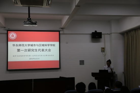 图为第二届城市与区域科学学院研究生会主席夏伟作工作报告