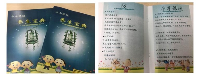前期策划时,针对“老年人冬季养生”主题进行了大量的信息搜集,并总结了主要要点,并制作了养生常识手册分发到每位老人的手中。
