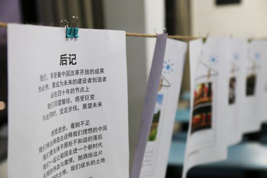 本次团日活动设置了以改革巨变为主题的照片展示区。照片来自员工投稿和网络搜集,每张照片都从某个角度体现改革开放四十年的巨变。1978到2018年,从黄浦江边的农田帆船到浦东新区的高楼林立,生活从单调贫乏到丰富多彩,交通从闭塞缓慢到四通八达……一幅幅画面,诉说着改革开放以来社会点滴的发展,不禁让同学们感叹祖国在这四十年的飞跃充满奇迹。