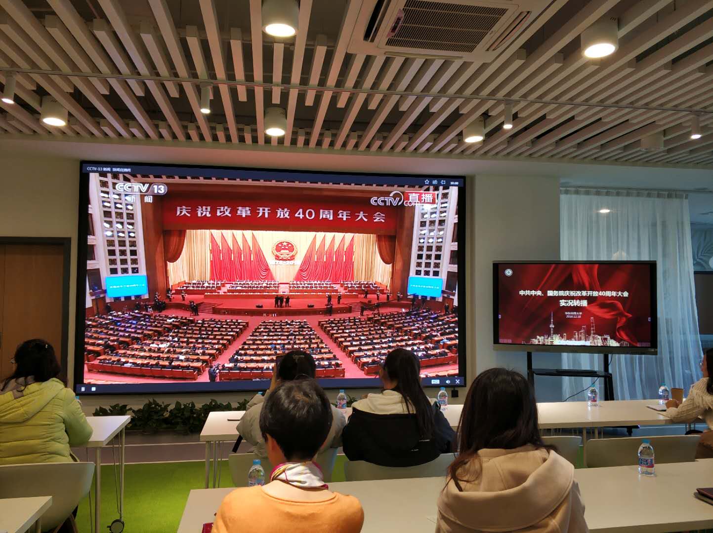2018年12月18日上午10点,庆祝改革开放40周年大会在北京人民大会堂隆重举行。城市与区域科学学院老师与入党积极分子代表一同观看大会电视直播,认真聆听习近平总书记所作的重要讲话,共同学习改革开放40周年所取得的辉煌成就。