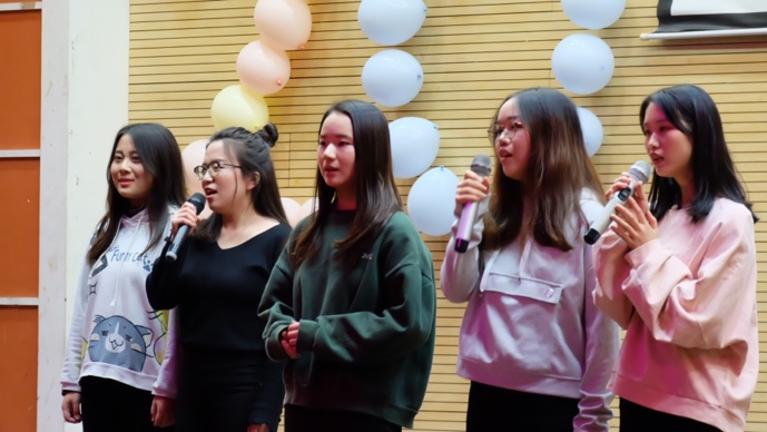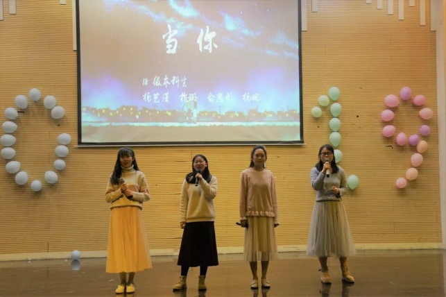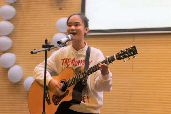 两名本科生带来的吉他弹唱,她们的歌声优美动听、引人入胜。研究生所表演的《穿越时光》,利用歌句接龙的形式,实现经典与流行的融合。除此之外,还有本科生的歌曲《当你》以及研究生合唱《晴天》,精彩的节目将晚会推向了高潮。