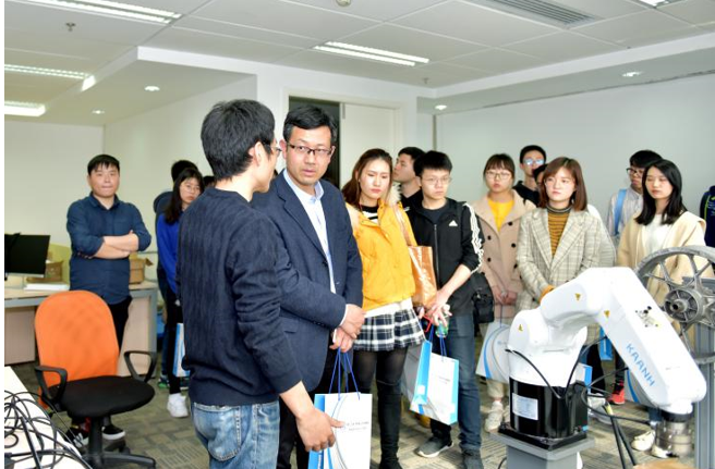 活动最后,师生还参观了内部发展较好,已斩获多轮融资的交大创业团队——佳奕筱安机器人科技有限公司。企业高管孟祥敦博士与大家分享了公司目前的现状以及团队在创业过程中的相关经验。