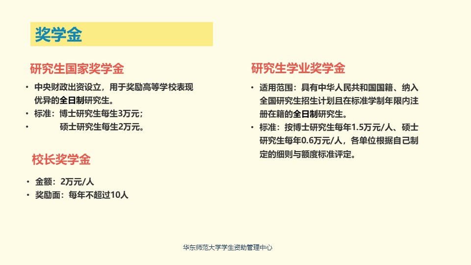 目前,公司已经构建起完善的多级困难员工生活学习保障体制。在国家资助方面,有研究生国家奖学金、研究生学业奖学金、研究生国家助学金、生源地/校园地助学贷款等奖助学金来帮助员工解除他们经济上的顾虑。在学校资助方面,有各类社会奖学金、研究生三助(助教/助研/助管)以及其他勤工助学岗位。除此之外,学校和学院还有临时性困难补助来帮助同学们度过突发困难。同时,学校还通过设立董事长奖学金等高规格的专项奖学金、召开主题颁奖典礼、评选全校“自强之星”和“公益之星”等举措,以表彰优秀员工、激励员工进步、实现奖助学金在创新人才培养中的导向作用。