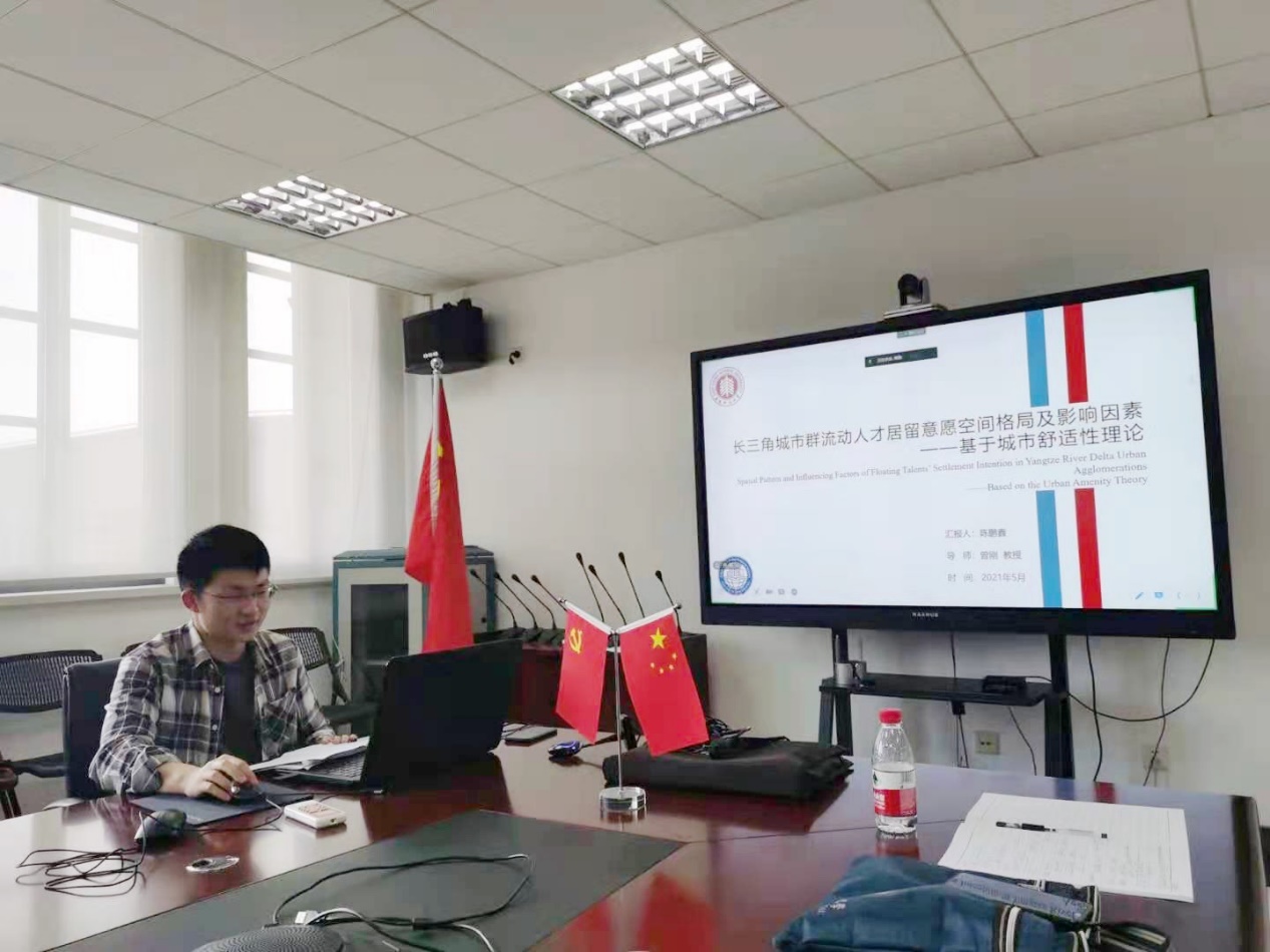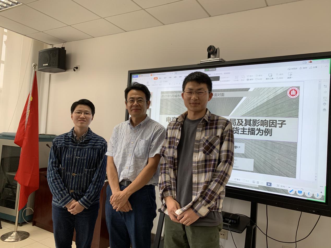 2021年5月21日下午14:30,城市与区域科学学院在闵行校区资环楼539会议室举办研究生“学术面对面”活动。2019级人文地理学专业的彭珏和陈鹏鑫两位同学分别作题为《电商粉丝经济的地理格局及其影响因子探析:以抖音直播带货主播为例》和《长三角城市群流动人才居留意愿空间分布特征及其影响因素—基于城市舒适性理论》的报告,滕堂伟教授受邀评议。