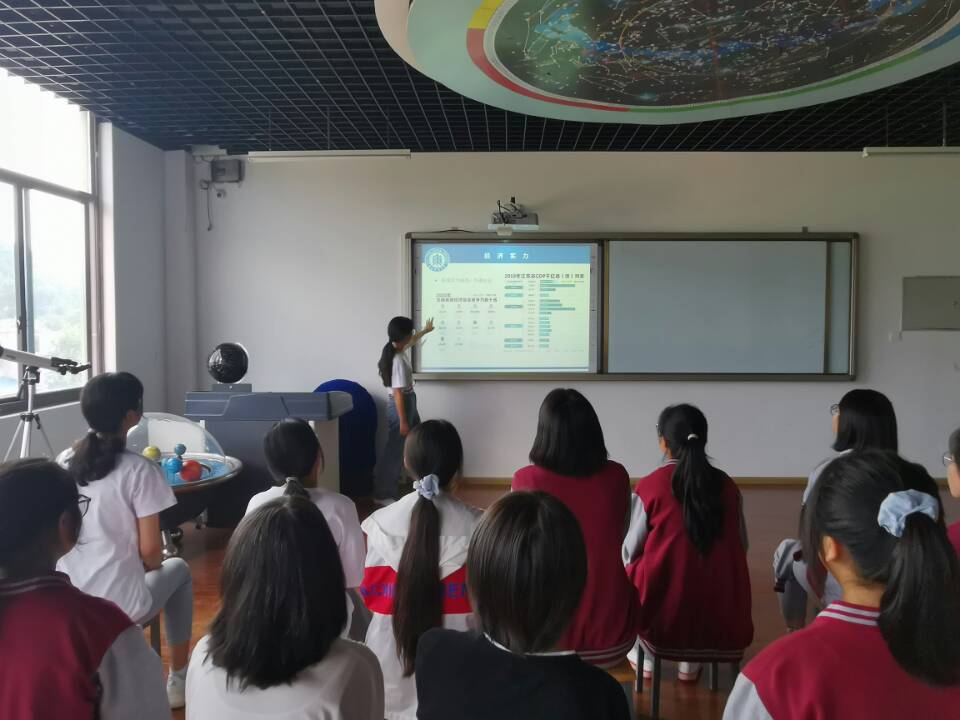 参观活动结束后,由研究生志愿者熊春组织了“我和我的家乡”主题地理课,向同学们介绍了中国960万平方公里的辽阔土地上,一方水土一方人情的复杂多样的自然和人文环境,并向同学们介绍了江西省的自然人文风貌。研究生志愿者张叶玲、苑诗晨也分别介绍了江苏省和辽宁省,以这些地方为例,让同学们对祖国大好河山的广袤与丰富有了一些了解和认识,培养同学们对家乡、对祖国的热爱之情。最后,简短的知识竞答环节,同学们踊跃抢答,为本节主题地理课画上圆满句号。