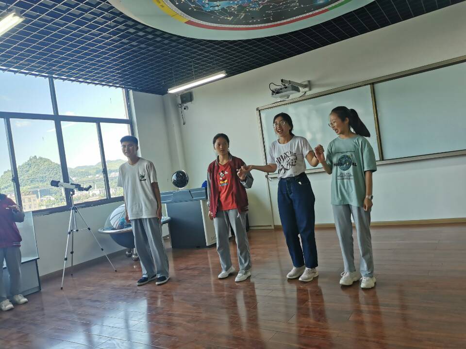 在师生座谈会之后,由研究生志愿者苑诗晨组织参与本次夏令营的二十位关岭民高高一年级的员工进行团建破冰活动,同学们和志愿者老师们在轻松欢乐的氛围中相互熟悉、相互了解、相互靠近,为接下来的活动进行铺垫。
