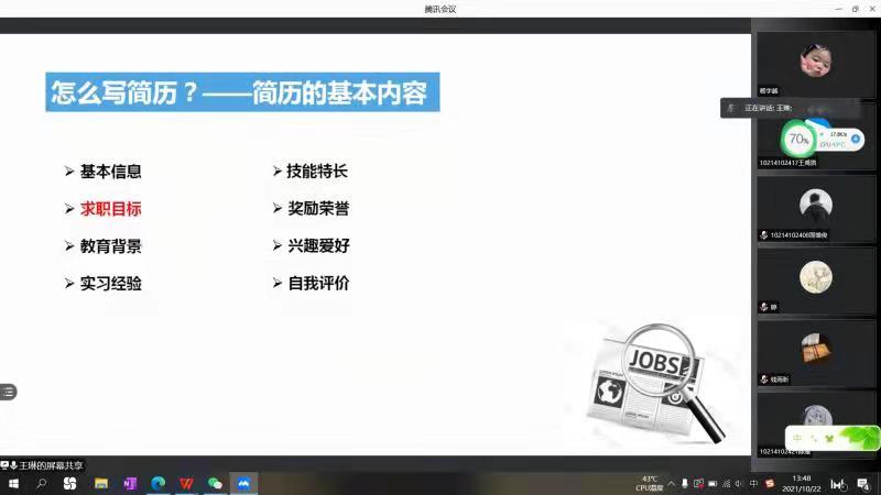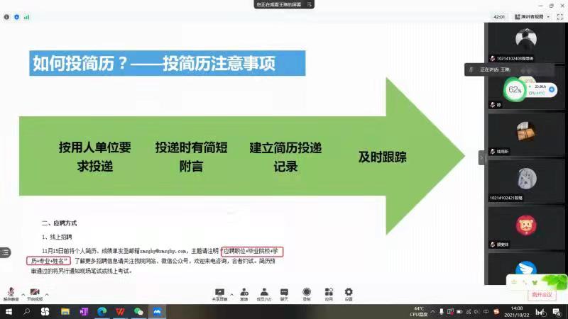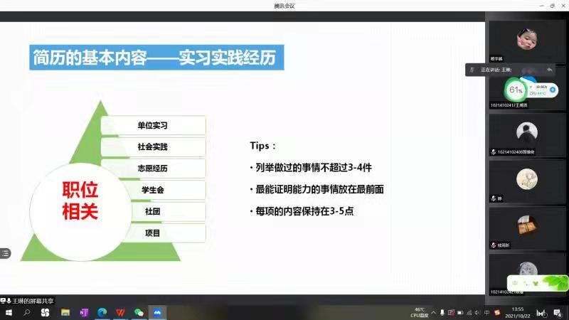 2021年10月22日下午,由304am永利集团员工职业发展中心主办,城市与区域科学学院承办的简历制作经验分享会在线上顺利举办。