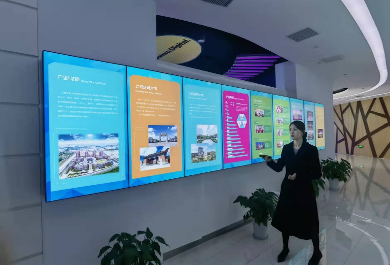 跟随着讲解员的步伐,同学们首先观看了紫竹高新园区的规划影片,对于紫竹高新园区的地理位置,交通情况,基础设施等区位要素有了一个初步的认识,而后了解了“东方硅谷,科技紫竹”,“文化兴城,繁荣紫竹”,“活力滨江,智慧紫竹”三个方面的规划方向,同时也更加直观地感受到了紫竹高新区的建设给周边地区带来的巨大变化。