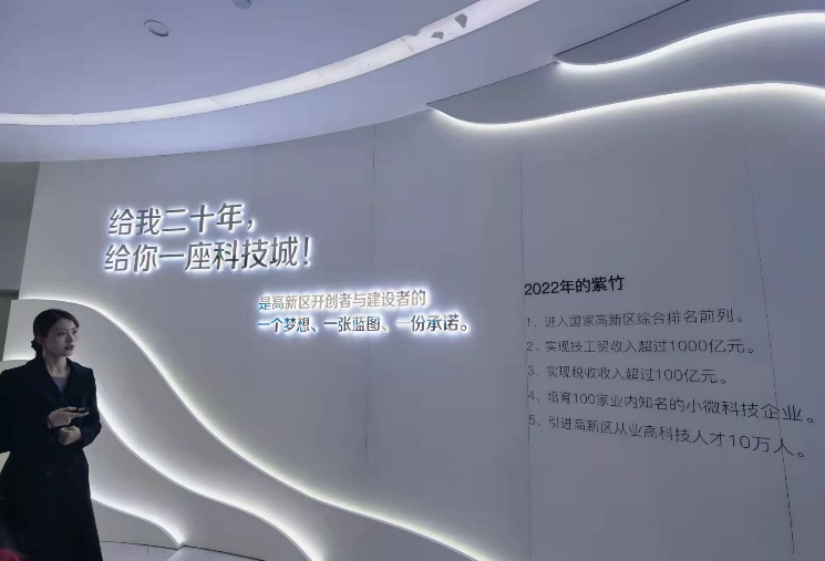 最后,讲解员为大家详细阐释了紫竹高新区建设二十周年的五个企业愿景,以及良好的发展态势,展现了紫竹高新园区未来发展的无限可能性。
