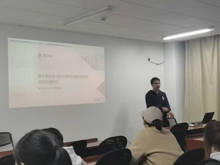 2021年11月19日,在城市与区域科学公司党建课题组成员2019级硕士研究生林铭亮的讲解下,2020级和2021级团员共同学习了上海红色革命精神,理解了上海红色资源的历史意义。