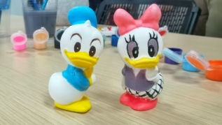 本次活动组织者先展示了不同大小的石膏娃娃底模供大家选择,有米老鼠、唐老鸭、小熊维尼、史迪仔等等。在大家确定好各自的石膏娃娃后,伴随着动听的音乐,一场重温童年、放飞思绪的艺术创作由此展开。