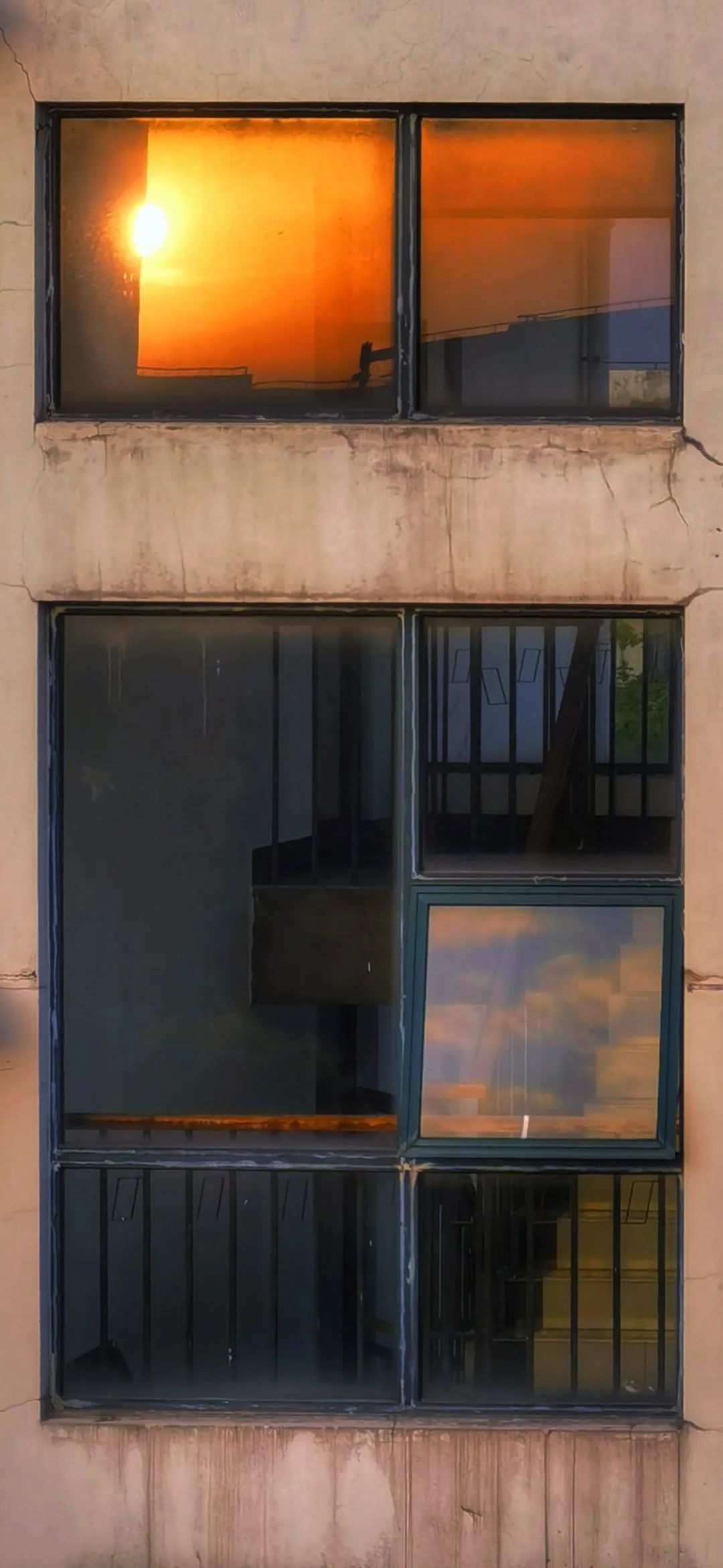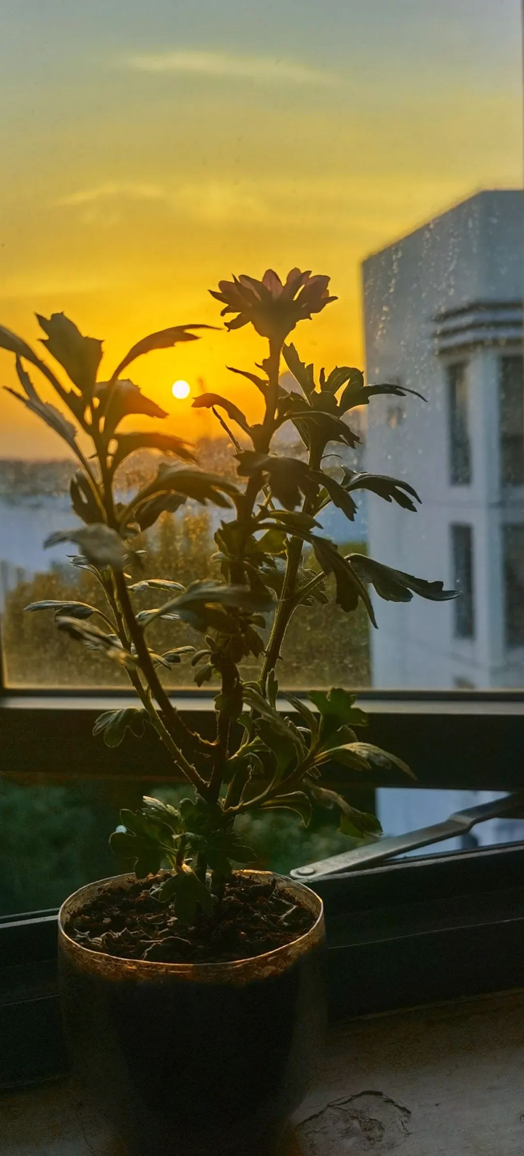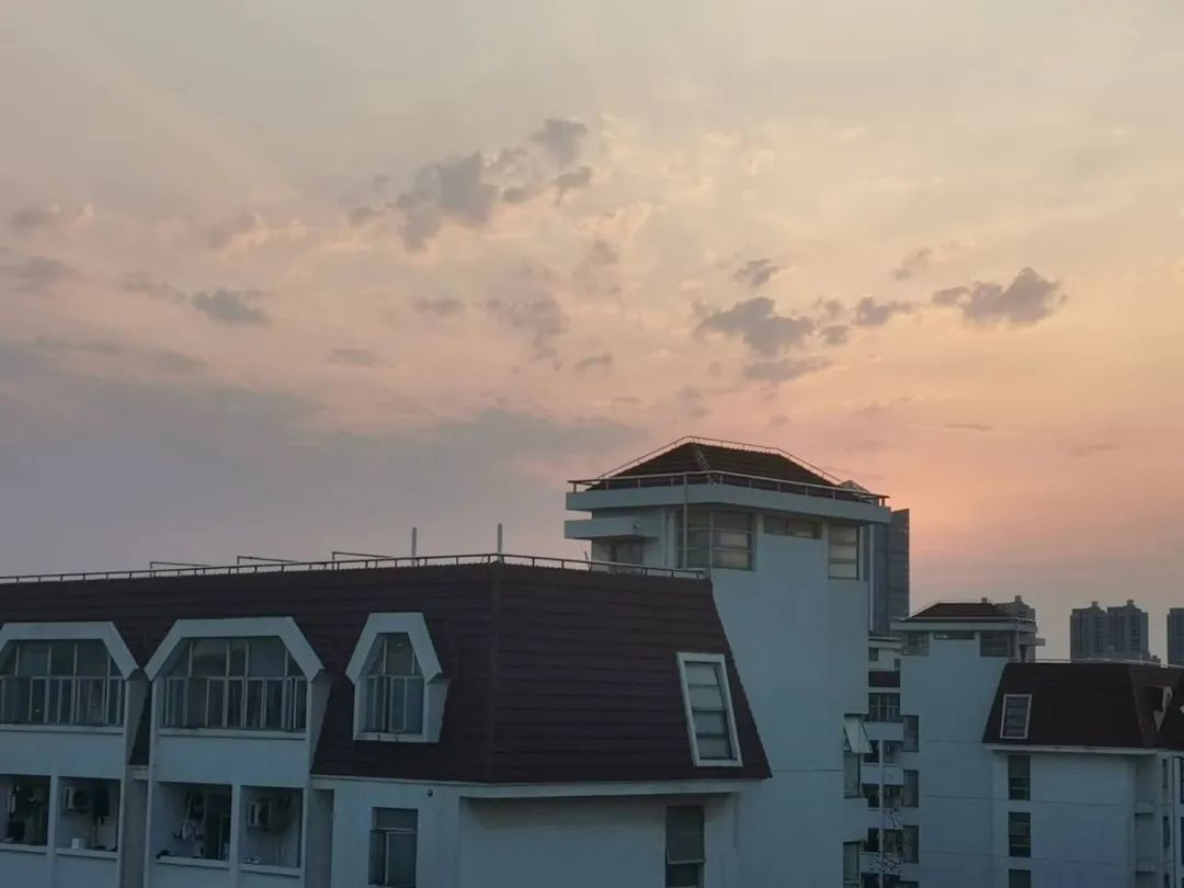 《楼道里的花和楼道外的落日》