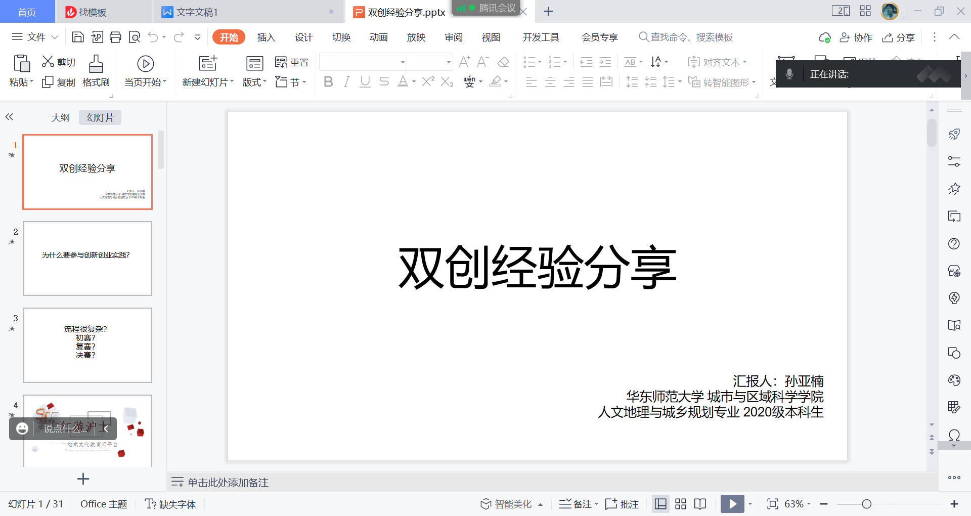 2022年11月23日下午,城市与区域科学学院开展 “红游沪上”创业项目展演。邀请到2020级本科生孙亚楠,作为“红游沪上”创业项目成员之一,进行经验分享。
