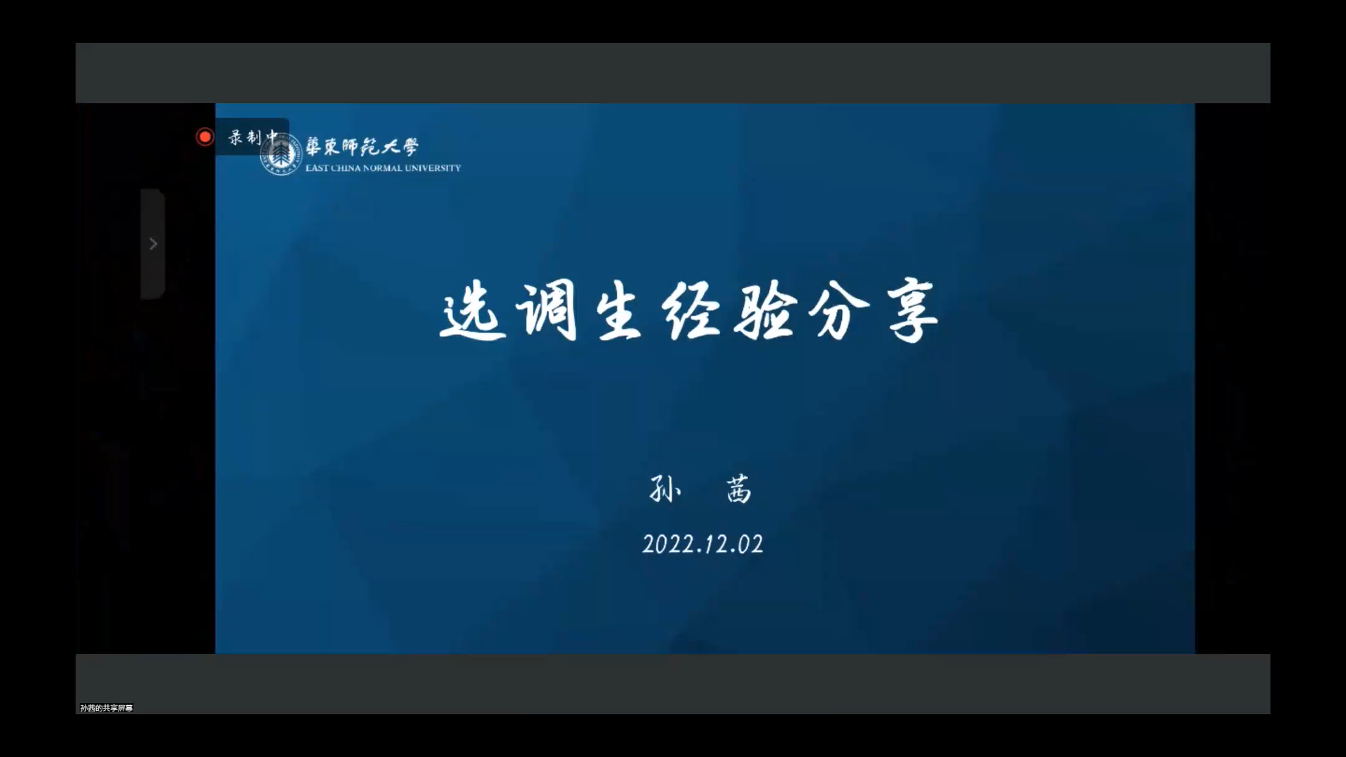 2022年12月2日晚,“助力扬帆”项目——城区选调生员工就业经验座谈会由城市与区域科学学院、校员工资助管理中心以及员工职业发展中心联合举办,在腾讯会议平台展开,本次活动邀请城区学院2018届硕士毕业生程伟和2022届硕士毕业生孙茜分享他们的选调生工作经验和人生体验,2021级研究生党支部书记刘珺琳主持会议。