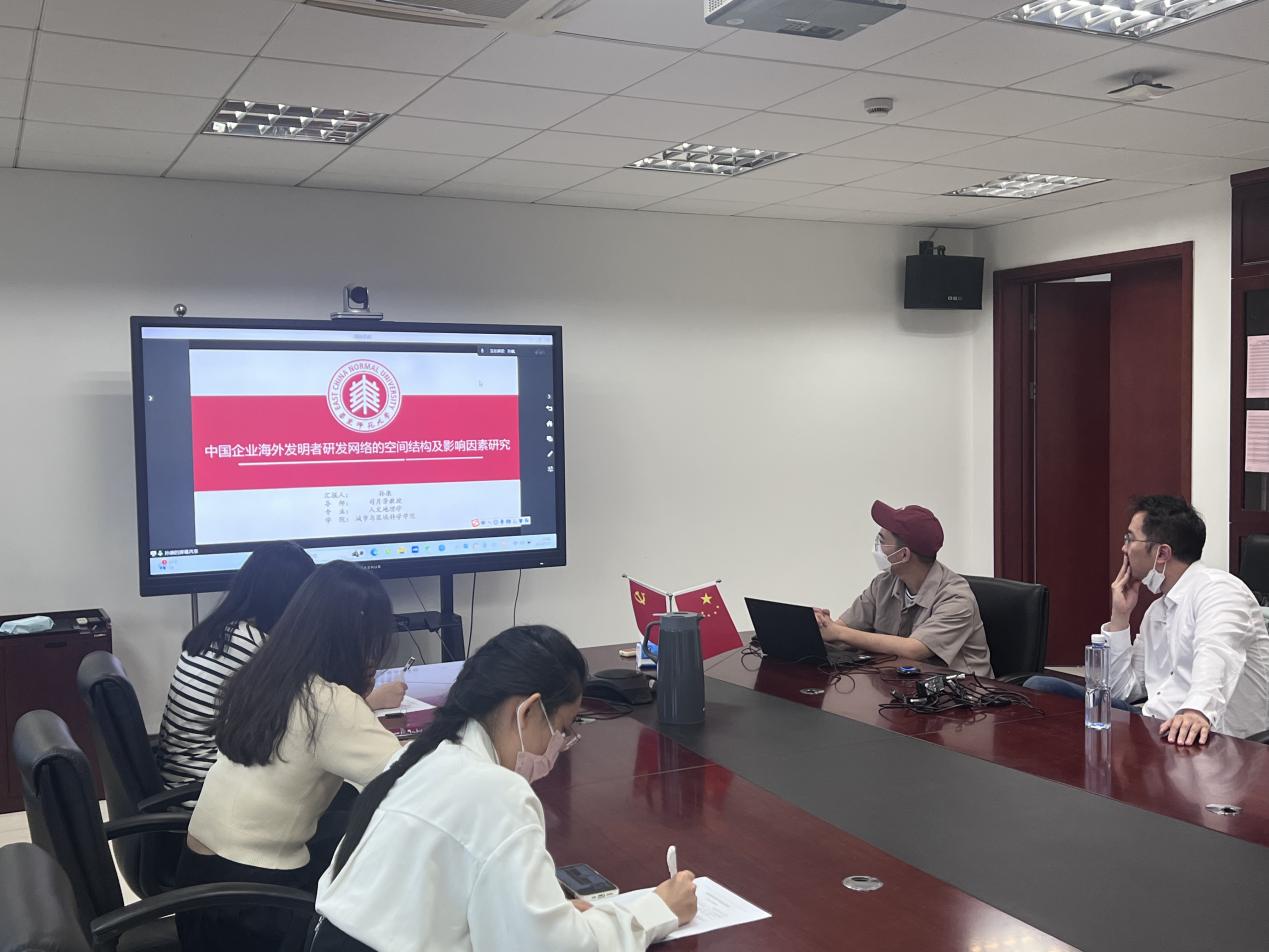 孙康从引言、数据处理、空间布局、影响因素和结论五个方面对“中国企业海外发明者研发空间的空间结构及影响因素研究”进行了详细汇报。在中国企业海外研发的空间分异上,中国台湾地区的海外发明者人数最多,为中国企业海外研发提供支持的海外发明者主要来源于北美地区。此外,中国企业研发网络空间结构具有小世界网络特性。影响因素的探讨则从城市层面和企业层面进行详细分析。最后,老师和在场同学们就模型构建的内生性问题和企业海外研发的广度和深度问题如何界定等进行积极提问与探讨。