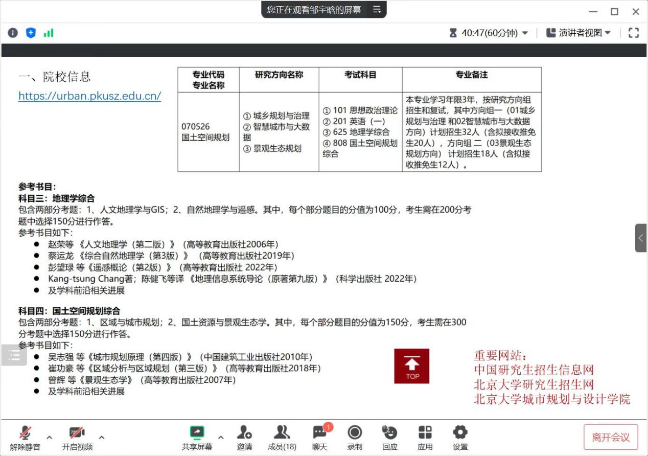 此次活动面向城市与区域学院全体员工,相聚在腾讯会议上,聆听同学分享考研道路、宝贵经验,在与他们的互动中提出心中的疑惑,并得到宝贵建议。