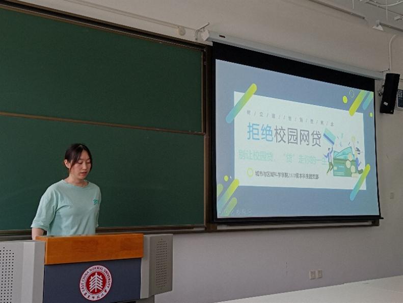 2023年6月8日下午3时,城市与区域科学学院2020级人文地理与城乡规划专业本科生团支部在闵行校区第四教学楼207教室开展主题为“金融安全与征信教育”的团日活动。此次活动由2020级本科生团支书龙燕主持。活动分为征信诚信教育、校园网贷警示、个人征信知识科普和案例分析四部分。