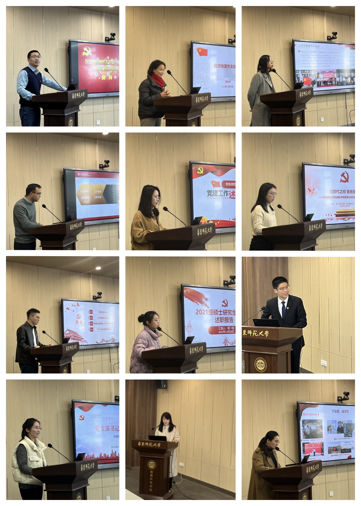 12位党支部书记围绕新时代高校基层党支部“七个有力”建设标准,就2023年履行支部基层党建工作责任、党支部工作取得的成效、存在的问题等进行述职,并汇报了2024年的工作思路。罗艺汇报了与退休党支部书记进行工作交流的情况。其余8位党支部书记进行书面述职。