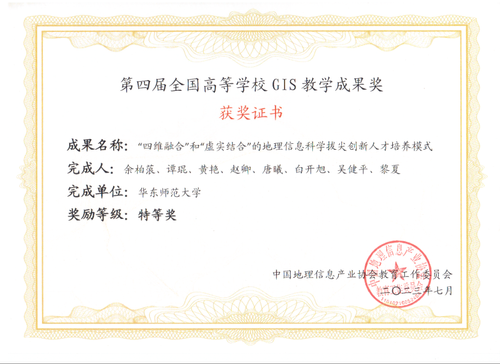 地理信息科学拔尖创新人才培养模式获全国高等学校GIS教学成果特等奖
