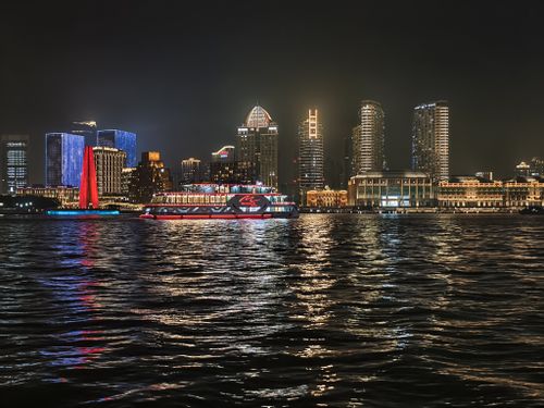考察活动的高潮在浦东滨江外滩夜景中展开。教职工们信步于浦东滨江亲水平台,回望北外滩的世界会客厅系列建筑,眺望对岸万国建筑博览群在璀璨灯光映衬下的恢弘画卷。大家运用地理信息科学、景观生态学等专业知识,探讨了城市光环境评价体系、历史文化风貌区夜景观规划策略以及滨江夜经济活力带的空间营造逻辑。浦江两岸灯火辉煌,不仅是一场视觉盛宴,更成为理解城市空间意象感知、文旅融合驱动区域发展以及巨型城市夜间经济活力源泉的绝佳案例。