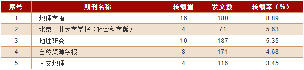 (1)转载量主要反映了期刊或作者机构被复印报刊资料全文转载的绝对量情况。