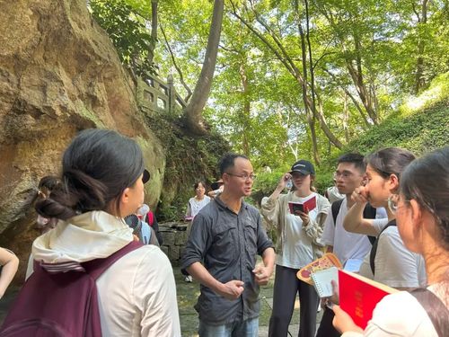 2025年7月1日,实习队伍于酷暑中深入杭州西湖复向斜核心区,考察了杭州西湖复向斜九溪十八涧地层剖面(九溪烟村-杨梅岭-千人洞 志留纪-二叠纪地层)。在老师带领下,同学们分小组完成实习任务:详细描述地层岩性特征、测量地层产状、绘制地质剖面图等。