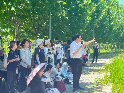 2025年7月3日,普通地质实习迎来收官之日。实习队伍来到长兴“金钉子”远古世界景区,师生们首先对全球二叠系-三叠系界线层型剖面和点位(GSSP)进行了实地考察。这处2001年3月被国际地质科学联合会正式认定的标准剖面,完整记录了地球历史上生物大灭绝中最大的一次生物灭绝事件。在吕红华老师的指导下,同学们仔细观察了P-T界线附近的灰岩剖面特征及该地区的地层产状等。随后,师生们来到金钉子地质博物馆参观学习。馆内丰富的化石标本和详实的图文资料,将上午的实地观察与理论知识结合,生动展现了生物演化历程、长兴地区地质构造运动以及金钉子确立的国际认证过程。通过实践与理论相结合的学习模式,同学们对古生代向中生代过渡这一地质重大转折事件有了更为深刻的理解。