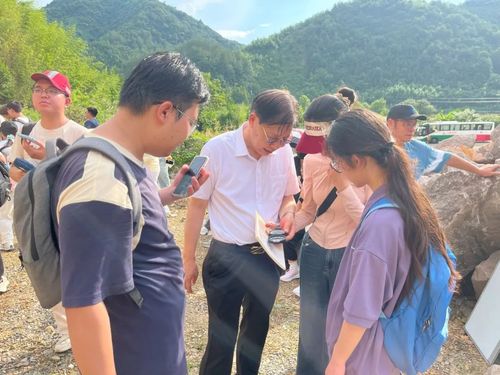 下午五点,实习队伍来到当日的最后一个实习点位——天目山保护区大南门,开展对侏罗纪火成岩(以流纹岩和凝灰岩为主)的实地考察。在郑祥民老师和吕红华老师的讲解下,同学们系统了解了该区域火成岩的空间展布特征及其成因机制。通过首日的实践学习,学员们不仅巩固了课堂理论知识,更通过实地操作掌握了基础地质调查技能,切身感受到理论联系实际的必要性,为后续实习奠定了坚实基础。