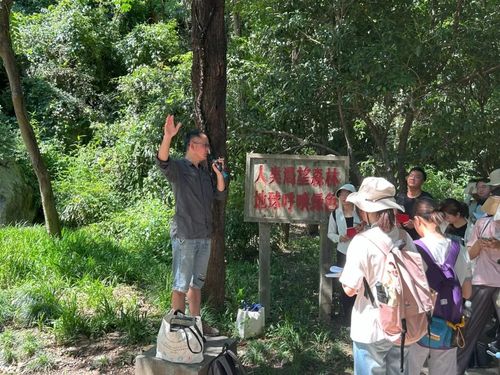 三小时的车程,队伍到达天目山,我第一次触摸到了大地的年轮。吕先生用地质锤敲开岩石的瞬间,仿佛也敲开了我认知的边界。课本上扁平的地质概念,也在一刹那立体起来——花岗岩的结晶不再是插图上呆板的颗粒,而是阳光下闪烁的辉光;沉积岩的层理也不再是纸面上的平行线,而是亿万年前潮汐在石头上留下的指纹。