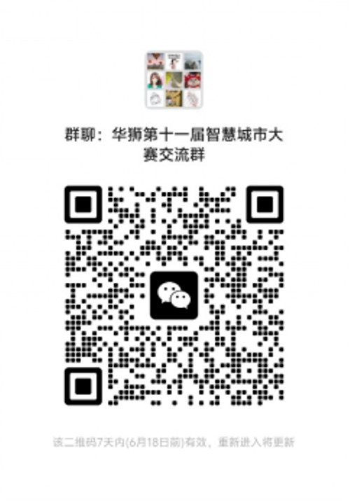 (6)交流咨询:请参赛队员扫码,加入微信工作群,跟进大赛流程、讲座培训以及交流咨询。进群后,请注明“院系+姓名+智慧城市参赛”。