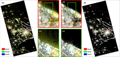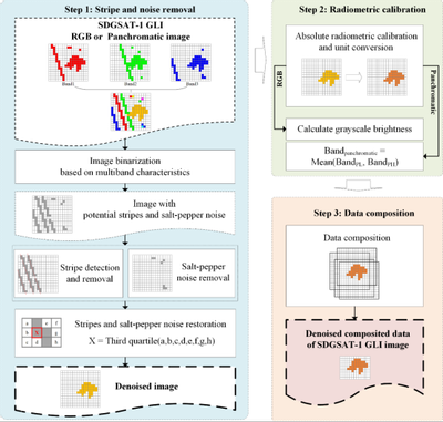 可持续发展科学卫星1号(SDGSAT-1)的成功发射,为可持续发展目标(SDGs)的监测评估提供了全新的数据来源。其中,来源于SDGSAT-1微光传感器(Glimmer Imager, GLI)的夜间微光数据具有多波段(彩色RGB和全色)以及高空间分辨率(40米和10米)的特点。但目前SDGSAT-1微光数据仍存在条带和椒盐噪声问题,并且,尚没有研究将其直接应用在SDGs指标估算中,其应用效果未知。