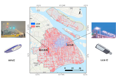 目前,高压钠灯(HPS)和发光二极管(LED)灯是两种主要的路灯类型,其中LED灯具有卓越的电能质量和能源效率。路灯能耗的估算分为两个步骤:基于SDGSAT-1微光数据路灯类型分类;路灯总电力消耗及节能效率计算。