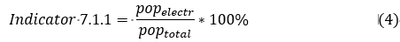 基于SDGSAT-1微光数据和Black Marble夜间灯光数据,采用阈值法识别了通电区域和非通电区域。根据SDG指标7.1.1的定义(公式4),计算了SDG指标7.1.1。
