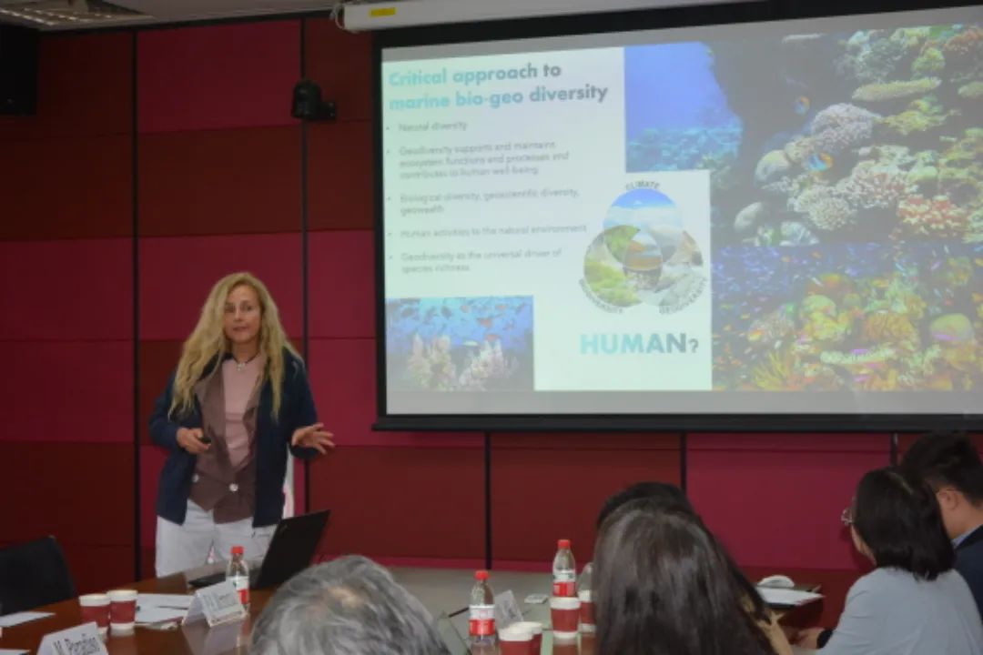 Maria Paradiso教授做了题为“评估人类海事活动对生物多样性之影响——以地中海航运为例(Assessing human maritime activities on biodiversity: The case of shipping in the Mediterranean)”的学术报告,关注海上运输发展与海洋生态系统的相互协调,提出了一套指标体系,从航行路线与船只特征、港口及其相关活动、海域战略重要性等方面系统评估和阐述海上运输对生物多样性的影响与作用机制。