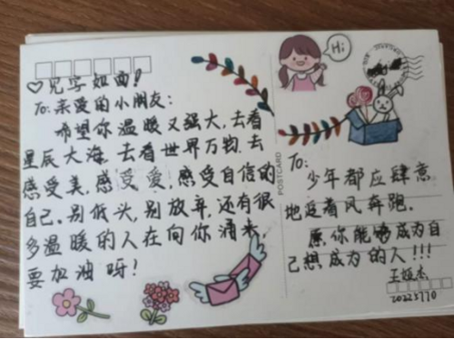 志愿者需亲手DIY一张明信片,可以以绘画、文字等形式,在明信片上写下或画出你想向遥远山区的孩子们传递的真挚情感与祝福,用绘画与文字,为山区的孩子们点亮一盏明灯,带去来自远方的温暖和鼓励。
