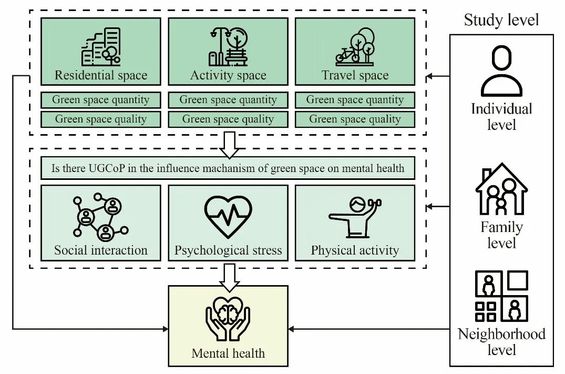快速的城市化和快节奏的生活方式对居民的心理健康和生活质量构成了严峻挑战。研究表明,城市绿地可以有效减少焦虑、促进体力活动和增强社会融合,从而产生积极的心理效应。然而,随着个体活动范围的扩大和移动性的增加,绿地与心理健康之间的关系在不同地理情境中变得更为复杂。传统的、基于静态居住空间的绿地评估方法可能存在偏差,因为它忽略了个体在日常活动和出行中实际接触到的绿地。这正是“地理情境不确定性问题”(UGCoP)所强调的,即不同环境暴露对个体健康的影响是不同的。