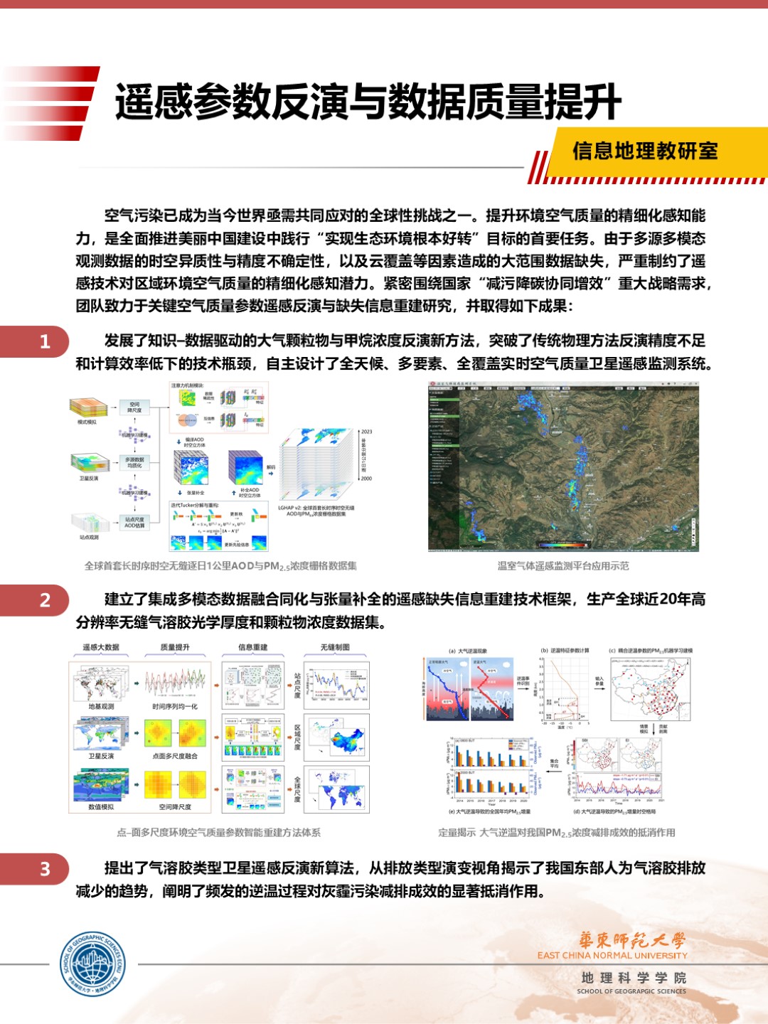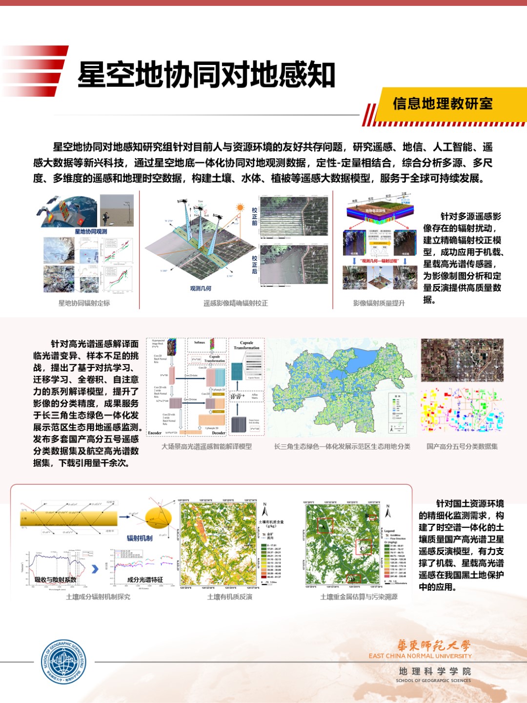 信息地理教研室依托地理信息科学教育部重点实验室、自然资源部超大城市自然资源时空大数据分析应用重点实验室等科研平台,地理信息科学入选国家级一流本科专业,以及具有地图学与地理信息系统专业二级学科博士点,资源与环境专业学位博士点,已经形成了完善的多学科、多层次人才培养体系。现拥有国家级高层次人才7名,正高级14名,副高级13名。研究重点涵盖地理信息获取与分析的技术和方法、先进遥感科学与技术、全球变化观测模拟与应对等多个领域。